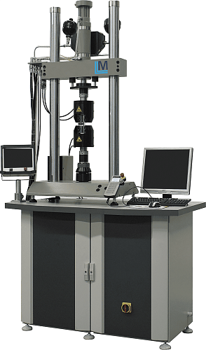 Испытательная машина МГД-0.5 в настольном двухколонном исполнении с высокой продольной и поперечной жесткостью и точной геометрией рамы нагружения. Предназначена для статических и динамических испытаний на растяжение, сжатие, изгиб, длительную прочность/ползучесть/релаксацию напряжений, МЦУ и МнЦУ с переходом нагрузки «через 0», циклическую трещиностойкость, механику разрушения, различных материалов, компонентов и готовых изделий.